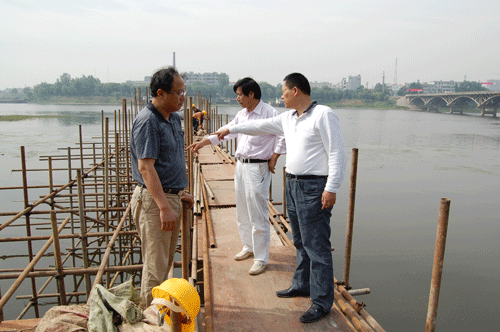 2009年5月31日,公司李世龍總經(jīng)理、劉朝發(fā)副總經(jīng)理、工程部李立柱經(jīng)理、辦公室紀(jì)愛(ài)國(guó)主任等到公司承建的泉河大橋檢查工作。