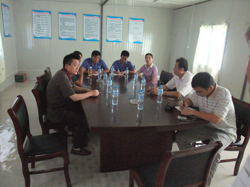 項(xiàng)目部經(jīng)理黃建海向李主席一行表示熱烈歡迎,就項(xiàng)目工程進(jìn)度、質(zhì)量、安全生產(chǎn)及職工的生活情況進(jìn)行了匯報(bào),李主席對(duì)項(xiàng)目部工作給予了肯定,并對(duì)項(xiàng)目部開(kāi)展“雙爭(zhēng)”競(jìng)賽活動(dòng)作了指導(dǎo)。李主席一行深入施工現(xiàn)場(chǎng),向堅(jiān)守在一線(xiàn)的員工表示了慰問(wèn),他指出要做好一線(xiàn)職工防暑降溫工作,確保項(xiàng)目工程無(wú)一例安全事故,勉勵(lì)大家要抓住當(dāng)前有利的施工條件,進(jìn)一步加快施工進(jìn)度,抓好工程質(zhì)量,為公司項(xiàng)目創(chuàng)建品牌工程,并親手送上了防暑降溫物品。