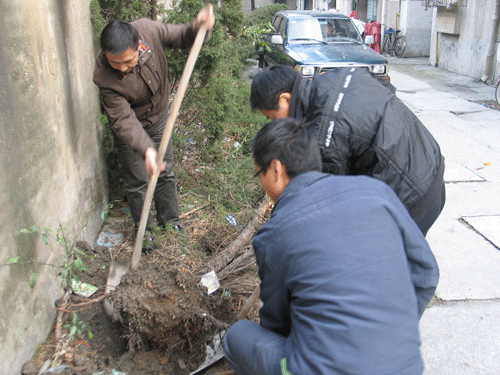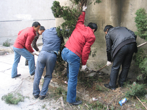 公司物料倉庫后沿的一行柏樹由于枝繁葉茂,在這次提前到來的大雪中不堪重荷,不少樹木橫臥走道,影響美觀,有礙出行。2009年11月30日下午,公司團(tuán)委組織機(jī)關(guān)部分團(tuán)員青年對被壓倒的柏樹進(jìn)行一一扶植,并修整了門前綠化帶。