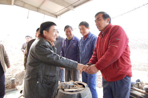 2009年12月24日上午,集團(tuán)公司胡運(yùn)成董事長(zhǎng)在公司總經(jīng)理李世龍、辦公室主任紀(jì)愛國(guó)的陪同下來到渦河河道疏浚工程項(xiàng)目現(xiàn)場(chǎng)檢查指導(dǎo)工作,并看望和慰問了全體施工人員。