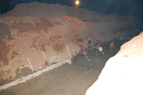 施工人員冒著酷暑挑燈夜戰(zhàn)
