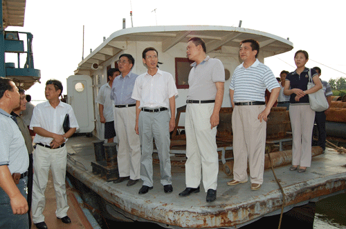 張書記、劉主席等一行到第七工程處皖吸五號(hào)船舶指導(dǎo)工作