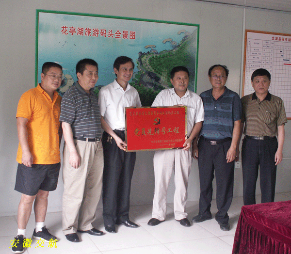 2011年7月10日,集團(tuán)公司黨委工作部吳曉伍主任等一行在公司黨委副書記、紀(jì)委書記曹興堂,黨群工作部主任劉洪亮的陪同下到花亭湖項目部進(jìn)行“黨員先鋒號工程”授牌儀式,并對花亭湖項目部的黨建工作進(jìn)行指導(dǎo)。