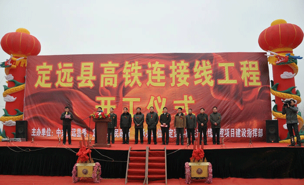 2011年12月20日上午10時,公司承建的京滬高鐵定遠站連接線項目開工儀式在定遠縣桑澗鎮(zhèn)隆重舉行??h委書記、縣人大常委會主任鄭斌宣布項目開工,縣委副書記、代縣長王成山致辭。我公司副總經(jīng)理侯力、項目經(jīng)理解正勇等出席了開工儀式。典禮由定遠縣委副書記余成林主持。