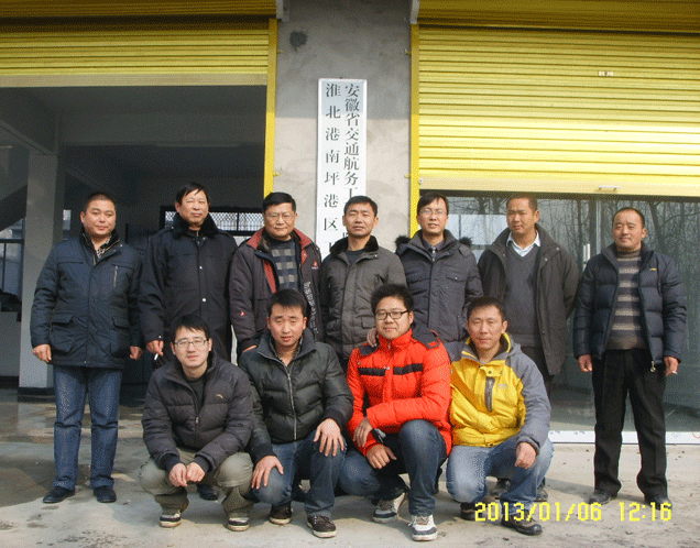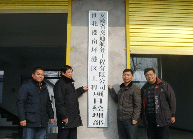 2013年1月8日,公司南坪港項目部在淮北市濉溪縣揭牌成立。南坪港項目辦副主任黃曉東、濉溪縣海事處處長吳巖、公司副總經(jīng)理侯力、生產(chǎn)管理部主任李立柱、南坪港項目部經(jīng)理曹萬飛以及項目部工作員參加了揭牌儀式。