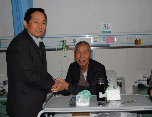 病房中牛主席緊握退休老職工的手,轉(zhuǎn)達(dá)了集團(tuán)公司對(duì)他的親切問候,詳細(xì)詢問了他的病情和現(xiàn)在的生活情況,叮囑陪同子女要關(guān)心和照顧好老人家,使其早日恢復(fù)健康。并希望老同志們?cè)谛碌囊荒昀锬軌蛞蝗缂韧年P(guān)心和支持交航的發(fā)展,為交航的建設(shè)獻(xiàn)計(jì)獻(xiàn)策。