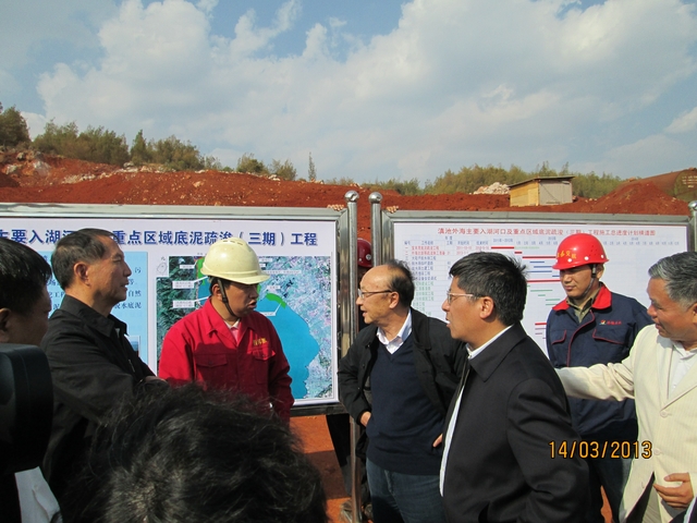 2013年3月14日,昆明市市委副書記、市委秘書長(zhǎng)及云南省人大代表部分領(lǐng)導(dǎo)蒞臨公司滇池治理三期工程小黑蕎存泥場(chǎng)指導(dǎo)工作。在現(xiàn)場(chǎng),指揮部副指揮長(zhǎng)王勇及項(xiàng)目部經(jīng)理邵佳就工程各方面情況向省市領(lǐng)導(dǎo)做了詳細(xì)的匯報(bào),市委副書記、市委秘書長(zhǎng)對(duì)我公司承接的滇池治理工程的質(zhì)量及安全情況予以充分肯定,并督促一定要加快工程進(jìn)度,確保工程按期完工。