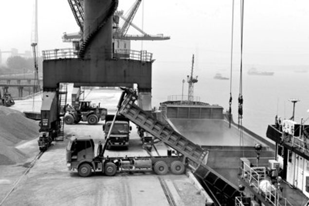 ◆ 4月15日,銅陵港外貿(mào)碼頭上,集裝箱和散貨裝卸一片繁忙。據(jù)悉,該外貿(mào)碼頭一季度港口完成吞吐量總計約40萬噸,其中集 裝 箱 完 成5106箱,比去年同期增加40%。