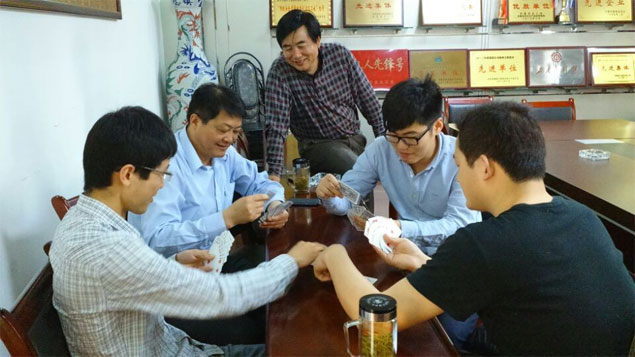 參賽選手分成A、B兩個賽區(qū),第一輪以抽簽形式?jīng)Q定對手,其后按編排確定對手。首輪比賽通過定時賽決出勝負(fù)。獲勝組進入下一輪比賽。其后五輪比賽,最終決出第一名、第二名、第三名。賽場上,選手們本著“友誼第一、比賽第二”的精神,認(rèn)真出牌對弈,且斗智斗勇,相互切磋牌藝。通過本場比賽,參賽選手不但增進了友誼和團結(jié),而且加強了相互間的交流和了解。