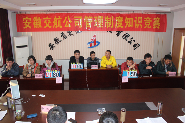 為實踐好公司“基礎(chǔ)管理夯實年”活動,切實提高公司整體管理水平,進一步規(guī)范生產(chǎn)經(jīng)營行為,扎實推進公司各項管理制度的學(xué)習(xí)宣傳和貫徹工作,12月8日,公司工會、工程管理部和團委共同舉辦“公司管理制度知識競賽”。公司機關(guān)、項目部、工程處,共12個代表隊36名選手參加比賽。公司黨委副書記、紀委書記戴樹明,副總經(jīng)理方申柱,工會主席王永來等領(lǐng)導(dǎo)親臨賽場為各位參賽選手加油助威。
