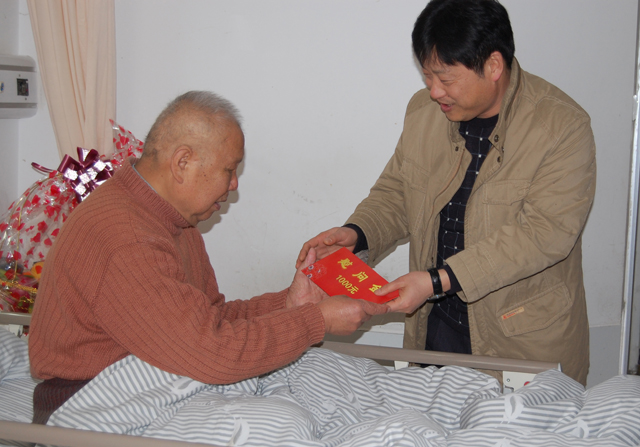 許總轉(zhuǎn)達了集團公司對他們的親切問候,詳細詢問了他們的家庭和生活情況。在病房中許總緊握退休職工李竹軒的手,叮囑他要安心養(yǎng)病,以積極樂觀的心態(tài)與病魔作斗爭,祝他早日康復(fù)。感謝他們?yōu)楣景l(fā)展作出的貢獻,希望老同志們在新的一年里能夠一如既往的關(guān)心和支持公司的發(fā)展,為公司的建設(shè)獻計獻策。