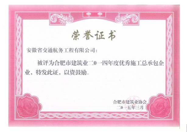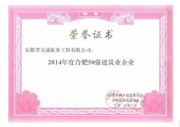 近日,合肥市建筑業(yè)協(xié)會公布了2014年度合肥市建筑業(yè)企業(yè)表彰名單,我公司榜上有名,喜獲“合肥市建筑業(yè)企業(yè)50強(qiáng)”、“合肥市優(yōu)秀施工總承包企業(yè)”兩項(xiàng)榮譽(yù)稱號。