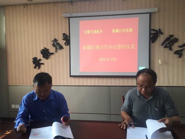2015年10月17日,公司與新疆江河公司在安徽交航五樓會議室舉行了合作協(xié)議簽訂儀式,就新疆高原水庫綜合治理市場開展合作。董事長、黨委書記、總經(jīng)理李世龍,副總經(jīng)理方申柱、劉朝發(fā)、黃國平等參加。
