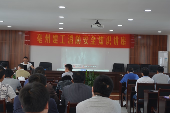 2016年5月11日上午,亳州建工邀請(qǐng)安徽省愛(ài)民防火教育中心郭濤教官在公司三樓會(huì)議室成功舉辦消防安全知識(shí)講座,公司領(lǐng)導(dǎo)、機(jī)關(guān)全體人員及項(xiàng)目部相關(guān)人員參加此次講座。