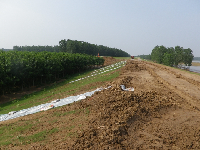 李玉強一行沿著我標段剛完工的新建堤防、老堤加固堤頂邊走邊看,詳細聽取了我標段項目副經(jīng)理關于我標段目前的防汛工作情況的匯報。李玉強表示新建成的堤防工程是蚌浮段臨北處今年防汛工作的關鍵,對我標段堤防邊坡雨淋溝防護措施表示贊賞,并要求在蚌浮段方臨處各參建單位中推廣。堤防工程土壤砂性大,修復工作繁重,李玉強囑咐我標段在面臨今年可能出現(xiàn)大洪水的情況下,思想上要保持高度重視,并在人力、物力、財力上給予充足支持,確保堤防工程的安全。