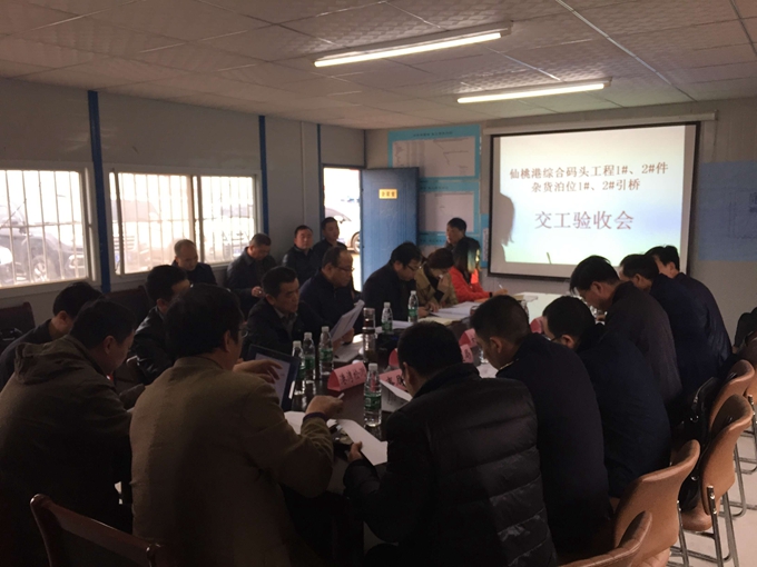 3月10日,在仙桃港碼頭項(xiàng)目現(xiàn)場(chǎng)會(huì)議室召開的仙桃港碼頭工程驗(yàn)收會(huì)議上,武漢港務(wù)集團(tuán)總經(jīng)理助理徐繼傳正式宣布仙桃港碼頭1#、2#件雜貨泊位,1#、2#引橋通過單位工程驗(yàn)收。仙桃市交通局、海事局、質(zhì)監(jiān)站、武港集團(tuán),設(shè)計(jì)院、監(jiān)理組、港灣檢測(cè),施工方等代表參加了會(huì)議。