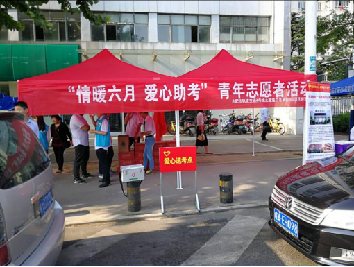 安徽交航合軌4號線3標(biāo)項(xiàng)目職工在祁門路與金寨路交口設(shè)立義工服務(wù)站,為考生主動送水、送文具,指導(dǎo)他們乘坐愛心出租車、公交車,對心里緊張的考生進(jìn)行心理輔導(dǎo),幫助考生減壓。為陪考家長提供座椅、飲用水等服務(wù)。同時為考生分發(fā)防暑藥品。參與愛心助考公益活動的交航公司職工成為高考期間合肥街頭一道靚麗的風(fēng)景線。