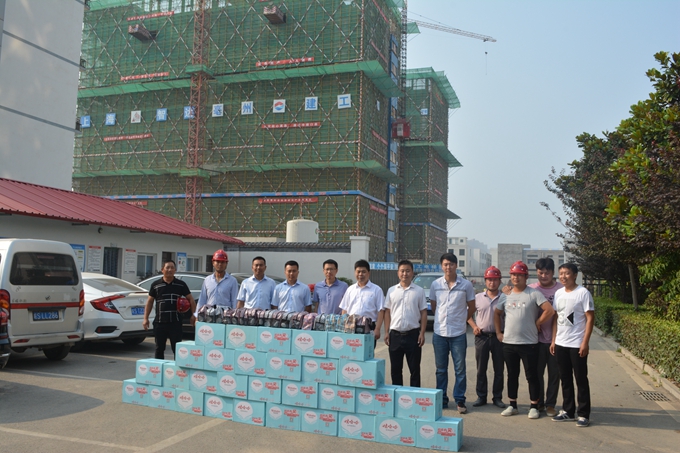 時(shí)值盛夏,烈日炎炎,亳州建工副總經(jīng)理兼財(cái)務(wù)總監(jiān)李現(xiàn)龍、生產(chǎn)總調(diào)度胡志友等一行于6月29日上午赴各在建項(xiàng)目,為在高溫下堅(jiān)守崗位的一線員工送去降溫用品,送去絲絲清涼。