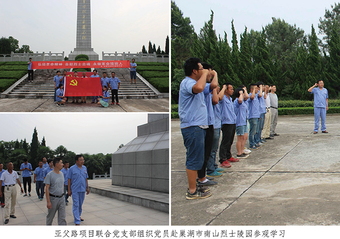 6月12日,機(jī)關(guān)黨支部組織黨員赴金寨縣烈士紀(jì)念館、革命博物館參觀學(xué)習(xí)。金寨是聞名全國的將軍縣,2016年4月,習(xí)近平總書記親臨金寨視察,就傳承紅色基因、推進(jìn)脫貧攻堅(jiān)作出重要指示。廣大黨員走在總書記走過的路上,切身感受先輩們的革命情懷和愛國精神,用心領(lǐng)悟總書記的諄諄教導(dǎo)和殷切期望。6月25日,亞父路項(xiàng)目聯(lián)合黨支部組織黨員赴巢湖市南山烈士陵園參觀學(xué)習(xí)。站在劉衛(wèi)民、應(yīng)仁書、夏長根、彭和平等烈士墓前,廣大黨員聆聽紅色故事、接受紅色洗禮,無不被烈士們拋頭顱、灑熱血的堅(jiān)強(qiáng)意志和獻(xiàn)身精神深深震撼。6月28日,蕭楊路項(xiàng)目黨支部組織黨員赴淮海戰(zhàn)役總前委蔡洼會(huì)議舊址參觀學(xué)習(xí);7月1日,駟馬山-沱澮河項(xiàng)目聯(lián)合黨支部組織黨員赴淮海戰(zhàn)役總前委舊址參觀學(xué)習(xí)?;春?zhàn)役總前委舊址、總前委蔡洼會(huì)議舊址,再現(xiàn)了劉伯承、陳毅、鄧小平、粟裕、譚震林等革命先輩在淮海戰(zhàn)役中的英勇無畏和英雄氣概。廣大黨員駐足深思、銘記于心。6月30日,合肥市軌道交通4號(hào)線TJ03標(biāo)段項(xiàng)目聯(lián)合黨支部組織黨員赴渡江戰(zhàn)役紀(jì)念館、安徽名人館參觀學(xué)習(xí),感受氣勢恢宏的戰(zhàn)爭場面、聆聽革命前輩的英勇事跡,近距離了解安徽政治、經(jīng)濟(jì)、思想、文化、軍事、科技等領(lǐng)域的代表人物,以賢為榜、見賢思齊。