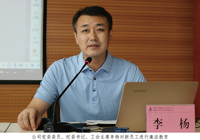 李楊為新員工上了一堂黨風廉政教育黨課,他要求新員工重視作風、廉潔從業(yè),光明磊落、挺直腰桿;同時,送給新員工三句話:做好吃苦的準備;做好受挫的準備;多參加文體活動。