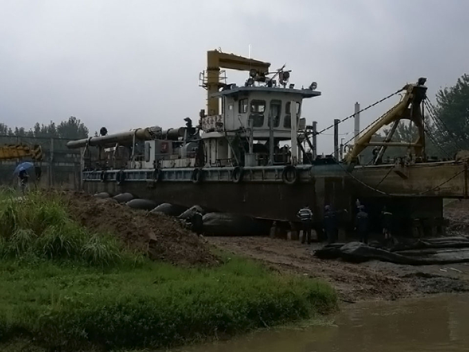 在此期間,我公司“皖吸十一號(hào)”等九艘船舶已在鳳臺(tái)鑫舶瀚船廠進(jìn)行修理。由于該船廠沒有承接大噸位挖泥船上坡的經(jīng)驗(yàn),在淮河水位較低的情況下他們提出的幾個(gè)方案無法落實(shí),而淮河流域附近又沒有更合適的船廠可以完成上坡工作。商經(jīng)理憑著數(shù)十年的工作經(jīng)驗(yàn),積極聯(lián)系有資質(zhì)、有經(jīng)驗(yàn)的外協(xié)人員參與作業(yè)。8月12日商經(jīng)理利用周末休息時(shí)間再次冒雨親赴現(xiàn)場(chǎng)指揮,終于使“皖吸11號(hào)”順利安全上坡并加以固定。