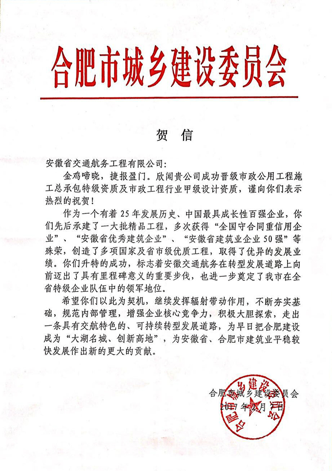 市場(chǎng)準(zhǔn)入是企業(yè)進(jìn)行市場(chǎng)經(jīng)營(yíng)活動(dòng)的敲門磚,也見證企業(yè)基礎(chǔ)建設(shè)水平的高低。曾幾何時(shí),安徽交航受困于此、受制于此、受限于此,僅憑主項(xiàng)二級(jí)資質(zhì)在如浪淘沙般的激烈市場(chǎng)上匍匐前行、艱難開拓,是為交航全體職工特別是勇于面對(duì)困難、敢于突破壁壘的市場(chǎng)經(jīng)營(yíng)驕子們的“心痛”。鑒于此,公司黨委領(lǐng)導(dǎo)班子審時(shí)度勢(shì)、高瞻遠(yuǎn)矚,及時(shí)提出資質(zhì)、注冊(cè)資本等市場(chǎng)準(zhǔn)入建設(shè)“三步走”規(guī)劃:主項(xiàng)提升、“品”字業(yè)務(wù)資質(zhì)完善與提升、相關(guān)多元完善和提升。功夫不負(fù)有心人,千帆過盡不忘初心,企業(yè)市場(chǎng)準(zhǔn)入建設(shè)工作正蹄疾步穩(wěn)、著力為交航差異化大發(fā)展助力賀彩!