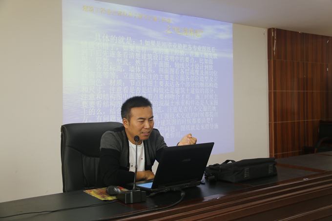 培訓中,陳超峰根據自己多年的現(xiàn)場經驗,從識圖到開工前準備到測量放線到技術交底等整個施工流程以及各施工節(jié)點可能出現(xiàn)質量問題的防控措施,向與會人員詳細講述了工程施工的過程控制以及動態(tài)管理工作。最后,陳超峰介紹了PROJECT、品茗安全和CAD等常用工程軟件的應用,以及如何使用軟件提高工作效率。