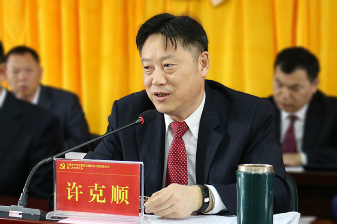許克順代表集團公司黨委,向大會的順利召開表示熱烈祝賀,并在講話中強調,要深入學習貫徹黨的十九大精神,以十九大精神指導大會召開、部署未來工作;要統(tǒng)一思想,振奮精神,切實增強發(fā)展緊迫感;要落實全面從嚴治黨要求,夯實“兩個責任”,不斷提高黨的建設科學化水平;要嚴明黨的紀律,嚴守政治規(guī)矩,確保大會圓滿成功。