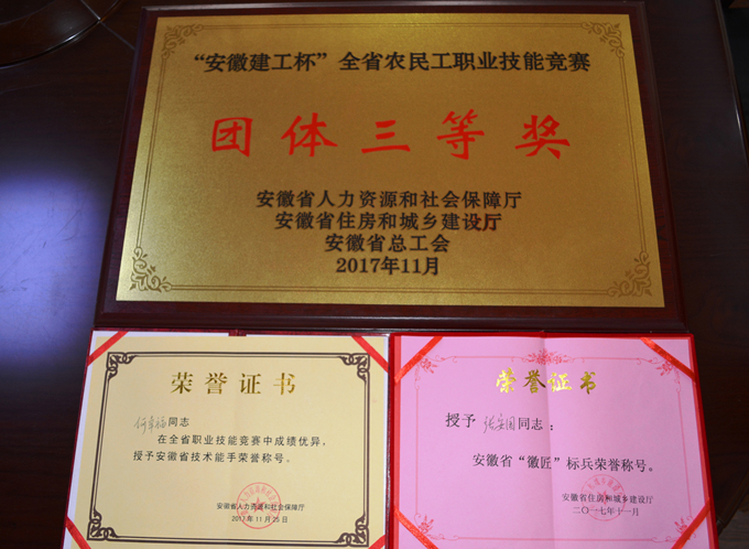 本次競賽設(shè)抹灰工、鑲貼工、砌筑工三個工種,分理論知識和技能操作兩部分。來自全省16個市、2個省直管縣和安徽建工集團(tuán)有限公司組成的19支代表隊共76名選手在決賽中展開激烈角逐,比賽高潮迭起、格外精彩。最終,亳州建工派出的選手們憑借過硬的作風(fēng),精湛的技術(shù)榮獲團(tuán)體三等獎,其中,何幸福獲得抹灰工組一等獎,被授予“安徽省技術(shù)能手”榮譽稱號,并推薦申報“省五一勞動獎?wù)隆?,張安國獲得砌筑工組二等獎,被授予安徽省“徽匠”標(biāo)兵榮譽稱號。