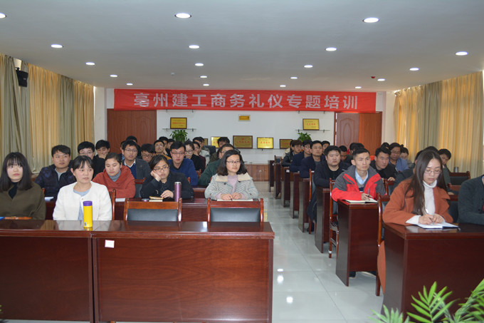 為培養(yǎng)員工良好的禮貌禮儀、行為規(guī)范,提高服務(wù)意識,塑造良好的個人形象及企業(yè)形象,3月23日下午,亳州建工特邀亳州學(xué)院中文系王虹講師對公司本部全體員工、各項目部部分員工及新入職員工進行了商務(wù)禮儀專題培訓(xùn)。