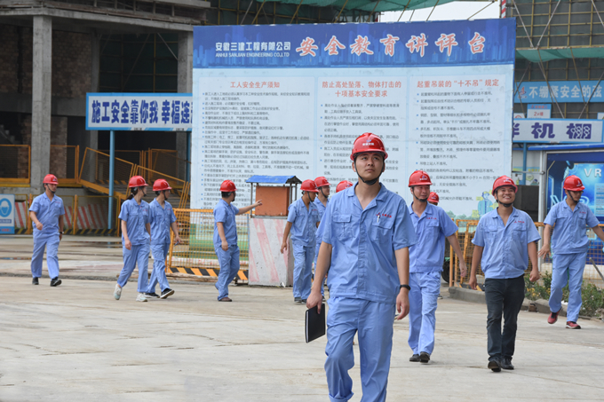 10日下午,大家在匆匆吃過午飯后便馬不停蹄的趕到阜陽臨泉縣廬陽現(xiàn)代產(chǎn)業(yè)園南園安置區(qū)項目。此項目分別由安徽三建和安徽水利承建。我們剛進(jìn)項目施工現(xiàn)場,便被整潔大方的施工環(huán)境給震撼,雖然項目還在施工狀態(tài),但施工現(xiàn)場的安全文明施工在細(xì)節(jié)上給大家提供了學(xué)習(xí)的樣板,無論是道路的整潔、施工現(xiàn)場的安全文明宣傳、整個施工現(xiàn)場的布置還是黨建工作的宣傳,都讓我們學(xué)到了很多辦公室之外的東西。