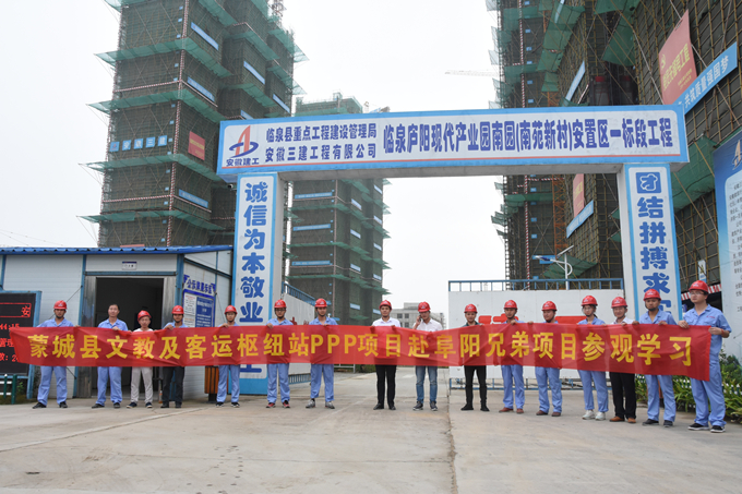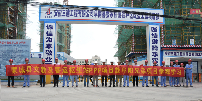 2018年7月10日,在公司第二工程分公司副經(jīng)理王菲及蒙城PPP項目經(jīng)理李道生的帶領(lǐng)下,蒙城PPP項目組織開展“走出去、學(xué)回來”系列活動,赴阜陽兄弟項目參觀學(xué)習(xí)。
