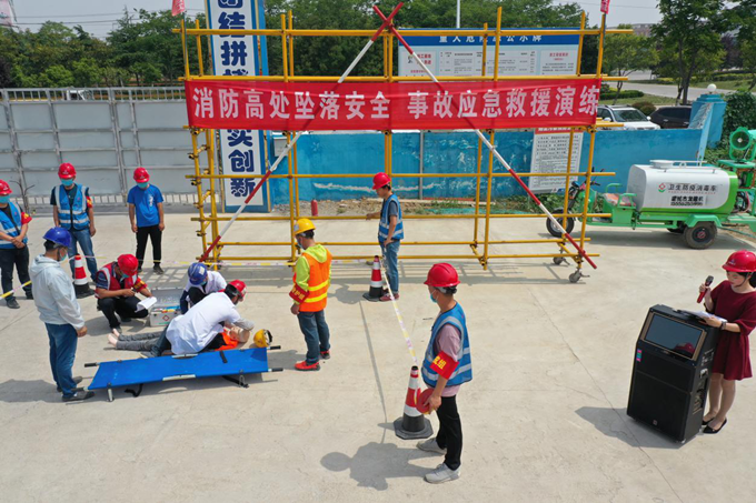 為認(rèn)真貫徹“消除事故隱患,筑牢安全防線”安全月活動(dòng)主題,全面落實(shí)項(xiàng)目建設(shè)“零輕傷”安全管控目標(biāo),結(jié)合項(xiàng)目建設(shè)進(jìn)度和現(xiàn)場(chǎng)環(huán)境特點(diǎn),5月31日,安徽交航公司蒙城綜合客運(yùn)樞紐站項(xiàng)目開展消防應(yīng)急處置演練及高空墜落應(yīng)急救援演練。