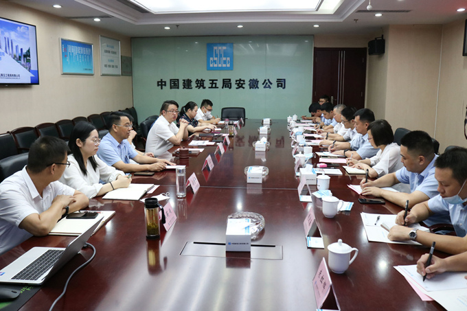 會上,雙方相關(guān)職能部門負責人分別就各自負責的領(lǐng)域進行了深入友好交流??疾炱陂g,公司考察組在中建五局安徽公司副總經(jīng)理、總工程師陳洪根陪同下實地參觀了中建五局安徽公司承建的合肥市產(chǎn)融中心2#、3#地塊項目。