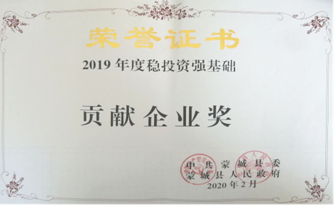 近日,蒙城縣委、縣政府印發(fā)《關(guān)于2019年度全縣綜合考評結(jié)果的通報》,根據(jù)蒙城縣委、縣政府綜合考核評比,安徽交航公司榮獲“2019年度穩(wěn)投資強基礎(chǔ)貢獻(xiàn)企業(yè)獎”。