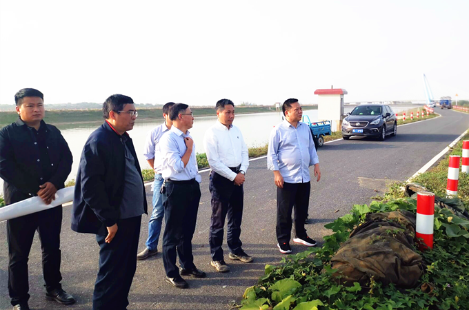 10月22日下午,安徽省引江濟淮集團黨委書記、董事長張效武一行,到安徽交航引江濟淮工程(安徽段)巢湖湖區(qū)航道及派河口服務(wù)區(qū)工程進行實地考察。公司黨委委員、總經(jīng)理助理董雙武,以及項目經(jīng)理杜靜、項目總工顧永根參加考察。