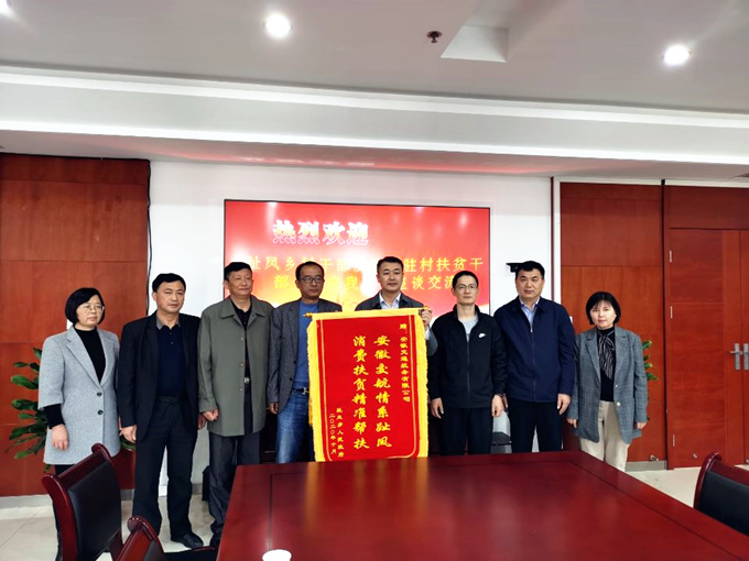 10月31日上午, 集團(tuán)派駐宿松縣趾鳳村扶貧工作隊(duì)隊(duì)長、第一書記鄭軍,趾鳳鄉(xiāng)黨委委員、武裝部長吳行舟,趾鳳村“兩委”班子一行到訪安徽交航公司,將一面寫著“安徽交航情系趾鳳,消費(fèi)扶貧精準(zhǔn)幫扶”的錦旗送到了公司黨委副書記、總經(jīng)理方申柱手中,對公司消費(fèi)扶貧精準(zhǔn)幫扶工作表達(dá)誠摯的感謝。座談交流中,雙方就趾鳳村如何增添幫扶舉措及鞏固扶貧成效等方面進(jìn)行了深入的溝通和交流。