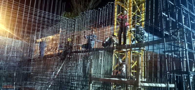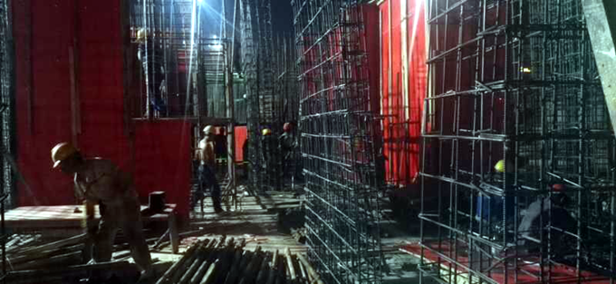 為加快施工生產(chǎn)進(jìn)度,項(xiàng)目部領(lǐng)導(dǎo)及管理人員、作業(yè)單位放棄休息日,發(fā)揚(yáng)“白加黑”的苦干實(shí)干精神,加班加點(diǎn),堅(jiān)守崗位??朔N種困難,戰(zhàn)勝多種不利因素,積極推進(jìn)施工進(jìn)度。項(xiàng)目部要求作業(yè)單位優(yōu)化施工組織,通過增大工作面、增加施工班組等多種措施,加快施工進(jìn)度。同時,為保證夜間施工順利進(jìn)行,項(xiàng)目在符合環(huán)保部門要求的條件下,項(xiàng)目領(lǐng)導(dǎo)帶領(lǐng)一線管理人員實(shí)施夜間值班制度,每天由值班經(jīng)理帶頭,項(xiàng)目安全員、質(zhì)量員及棟號長配合夜間施工生產(chǎn)管理。