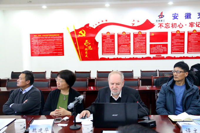 聽完介紹后,施密特先生對其在生物科技方面的研究進(jìn)行了講解,并從微觀角度對分子結(jié)構(gòu)、水分子電離結(jié)合、細(xì)菌的工作原理等方面,介紹了利用微生物如何對污水中的雜質(zhì)進(jìn)行分解和處理達(dá)到標(biāo)準(zhǔn)的方法。座談中,董傳明對中德合作新型污水處理技術(shù)依托的安徽水利-GSA城市生活廢水處理工藝進(jìn)行了介紹,并與參會人員就工程技術(shù)研究及水環(huán)境治理等方面進(jìn)行了詳細(xì)討論。