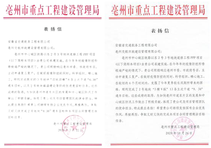 回眸過去,使命在肩。自成立以來,項目部積極探索“黨建+生產”模式,特別是2020年初疫情爆發(fā)、年中洪澇災害嚴重、年末環(huán)保管控的嚴峻情勢下,面對業(yè)主單位的“630”節(jié)點目標任務以及“930”節(jié)點目標任務,全體黨員干部沖鋒在前,有力地推動了項目生產及各項目標任務的完成。在搶工大干期間,項目部組織開展了“戰(zhàn)疫情、搶工期、保目標、促超產”勞動競賽,項目產值不斷刷新交航紀錄,實現單周最高完成產值1.12億,單月最高完成產值2億元,單季度最高完成產值6.69億元的驕人成績,得到了業(yè)主單位及亳州市委市政府的好評,兩次重要節(jié)點都獲得了亳州市重點工程建設管理局的表揚信。截至12月底,項目部已完成全部產值任務的80%左右。