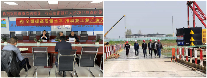 4月8日上午,亳州市交通基本建設工程質量監(jiān)督局馬洪剛一行到西淝河邵渡口大橋項目開展安全生產隱患排查工作。三公司經理潘家奎、項目執(zhí)行經理張功印及監(jiān)理單位代表等參加檢查。