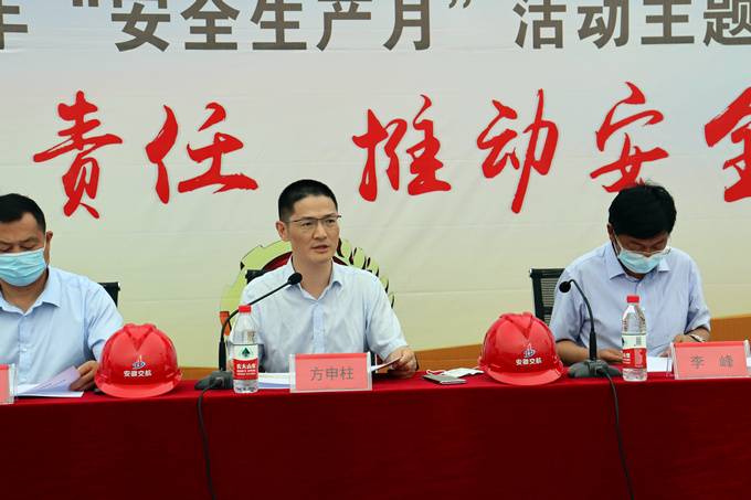 5月31日上午8點,安徽交航2021年“安全生產月”活動啟動暨宣誓儀式在引江濟淮項目部舉行。公司黨委書記、董事長、總經理方申柱出席儀式并講話,公司主要領導、各部室負責人、業(yè)主方代表、監(jiān)理方代表、班組作業(yè)代表、引江濟淮項目人員以及參賽隊員等參加。公司副總經理董雙武主持儀式。