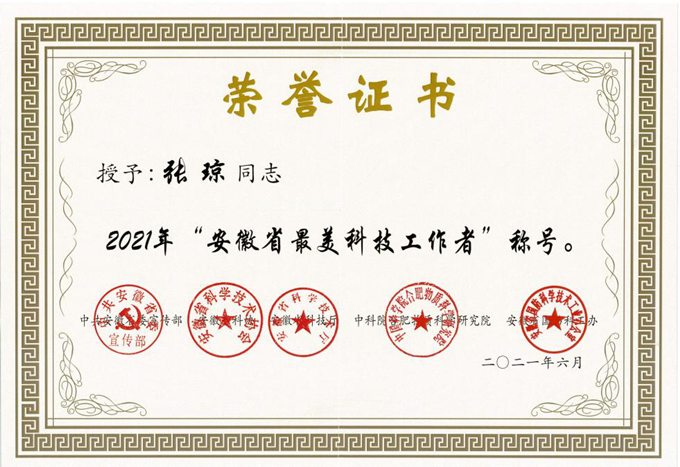 據(jù)了解,2021年“安徽省最美科技工作者”學(xué)習(xí)宣傳活動(dòng)由中共安徽省委宣傳部、安徽科協(xié)、安徽省科技廳、中科院合肥物質(zhì)科學(xué)研究院、安徽省國(guó)防科工辦聯(lián)合舉辦,旨在進(jìn)一步弘揚(yáng)中國(guó)科學(xué)家精神,激發(fā)廣大科技工作者的榮譽(yù)感、自豪感、責(zé)任感,引導(dǎo)和激勵(lì)廣大科技工作者學(xué)習(xí)最美、爭(zhēng)當(dāng)最美,以飽滿的精神狀態(tài)和昂揚(yáng)的奮斗姿態(tài)迎接新時(shí)代、踏上新征程,匯聚起建設(shè)新時(shí)代現(xiàn)代化美好安徽、 實(shí)現(xiàn)中華民族偉大復(fù)興中國(guó)夢(mèng)的磅礴力量。經(jīng)過主辦單位專家的層層選拔和嚴(yán)格篩選,最終在全省范圍內(nèi)遴選確定了10位2021 年“安徽省最美科技工作者”,張瓊同志是唯一一位作為施工企業(yè)科技工作者獲得此項(xiàng)榮譽(yù)的獲獎(jiǎng)?wù)摺?/FONT>