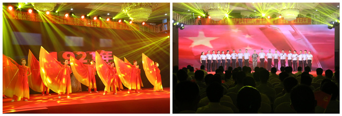 文藝匯演異彩紛呈,引人入勝。機(jī)關(guān)黨支部用歌伴舞的形式,演繹的紅色歌曲《向黨》拉開了匯演帷幕——第一篇章“承諾”。泗縣項(xiàng)目黨支部的大合唱《沒有共產(chǎn)黨就沒有新中國》告訴我們時(shí)代變遷,唯有中國共產(chǎn)黨對(duì)人民的赤誠之心不變;黃山龍郡家園項(xiàng)目黨支部的朗誦《帆起南湖破浪來》回顧了中國共產(chǎn)黨人的建黨初心;三公司黨支部的大合唱《人民軍隊(duì)忠于黨》、機(jī)關(guān)黨支部的獨(dú)唱《江山》表明中國共產(chǎn)黨根基在人民、血脈在人民、力量在人民。工會(huì)的音詩畫《紅船頌》,歌頌了百年來黨堅(jiān)持完成中華民族偉大復(fù)興這一初心使命不變,人民對(duì)美好生活的向往就是黨的努力方向這一承諾不變的偉大精神。