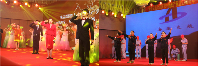 第二篇章“奮進(jìn)”——伴隨著亳州項(xiàng)目黨支部的情景音樂朗誦《百年榮光》展開。隨后,二公司滁州項(xiàng)目黨支部的獨(dú)唱《精忠報(bào)國》讓我們感受了忠誠于黨、忠誠于國的磅礴氣勢(shì);經(jīng)營公司的情景劇《砥礪奮進(jìn)》帶領(lǐng)我們回顧了交航在黨的帶領(lǐng)下66年的艱難發(fā)展歷程;三公司的歌伴舞《再一次出發(fā)》,贊頌了新時(shí)代中國共產(chǎn)黨人“不畏艱險(xiǎn)、勇于拼搏、努力奮進(jìn)”的偉大精神。