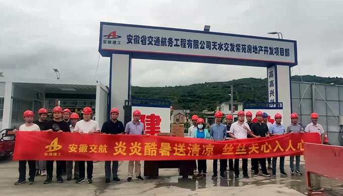 入伏以來,全國(guó)各地氣溫節(jié)節(jié)攀升。為切實(shí)做好當(dāng)前防暑降溫工作,確保職工身體健康和安全生產(chǎn),激勵(lì)項(xiàng)目廣大職工干事創(chuàng)業(yè)的積極性,近日,公司生產(chǎn)總調(diào)度、工程管理部主任周和友,安全監(jiān)察部主任朱云珍帶隊(duì)遠(yuǎn)赴千里到甘肅省天水市交發(fā)紫苑房地產(chǎn)開發(fā)項(xiàng)目,為項(xiàng)目現(xiàn)場(chǎng)職工“送清涼”。