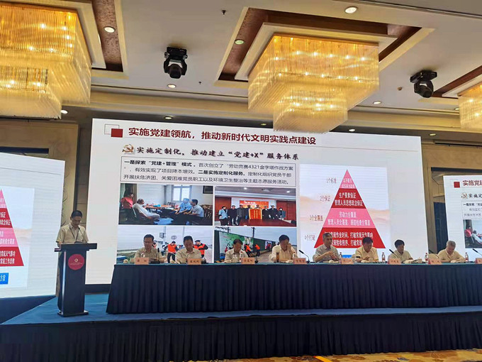 會上,方申柱通過PPT形式圖文并茂地介紹了安徽交航項目黨建工作經(jīng)驗做法以及主要工作成效。在談及黨建工作經(jīng)驗做法時,方申柱從兩個大方面進行了介紹:一是聚焦一個文明實踐。即以新時代文明實踐點為載體,通過整合四種資源、實施定制化服務(wù)、設(shè)立農(nóng)民工監(jiān)督員,高標準推動提質(zhì)筑安走深走實。二是點亮“三個紅色”。即通過打造“紅色堡壘”、激活“紅色細胞”、編制“紅色紐帶”,充分基層黨組織的戰(zhàn)斗堡壘作用。