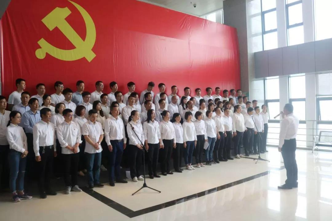 機(jī)關(guān)全體黨員職工面向黨旗,莊嚴(yán)地舉起右手,在黨委書記、董事長(zhǎng)李世龍的帶領(lǐng)下,以飽滿的熱情、嘹亮的歌聲高唱《我宣誓》,并集體表態(tài)“不忘初心齊奮進(jìn),牢記使命我先行”。