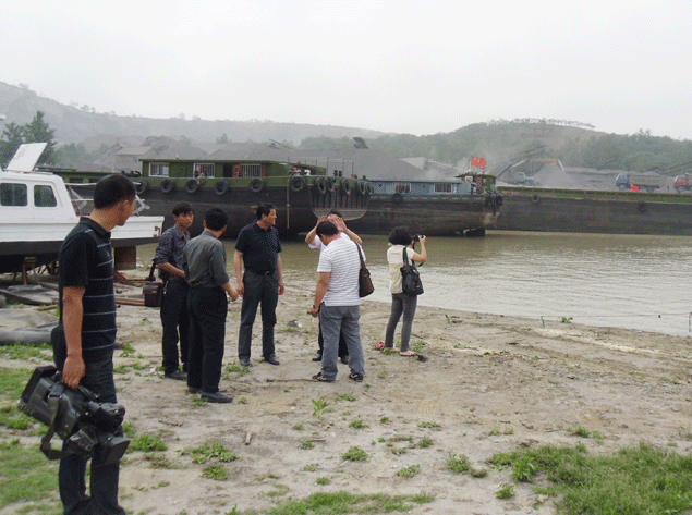 2013年5月23日,全椒縣電視臺記者在縣交通局副局長劉漢高、海事處處長李榮福的帶領(lǐng)下來我公司滁河航道疏浚工程現(xiàn)場采訪,公司工會主席王永來、項目部技術(shù)負責(zé)人劉浩然陪同采訪。