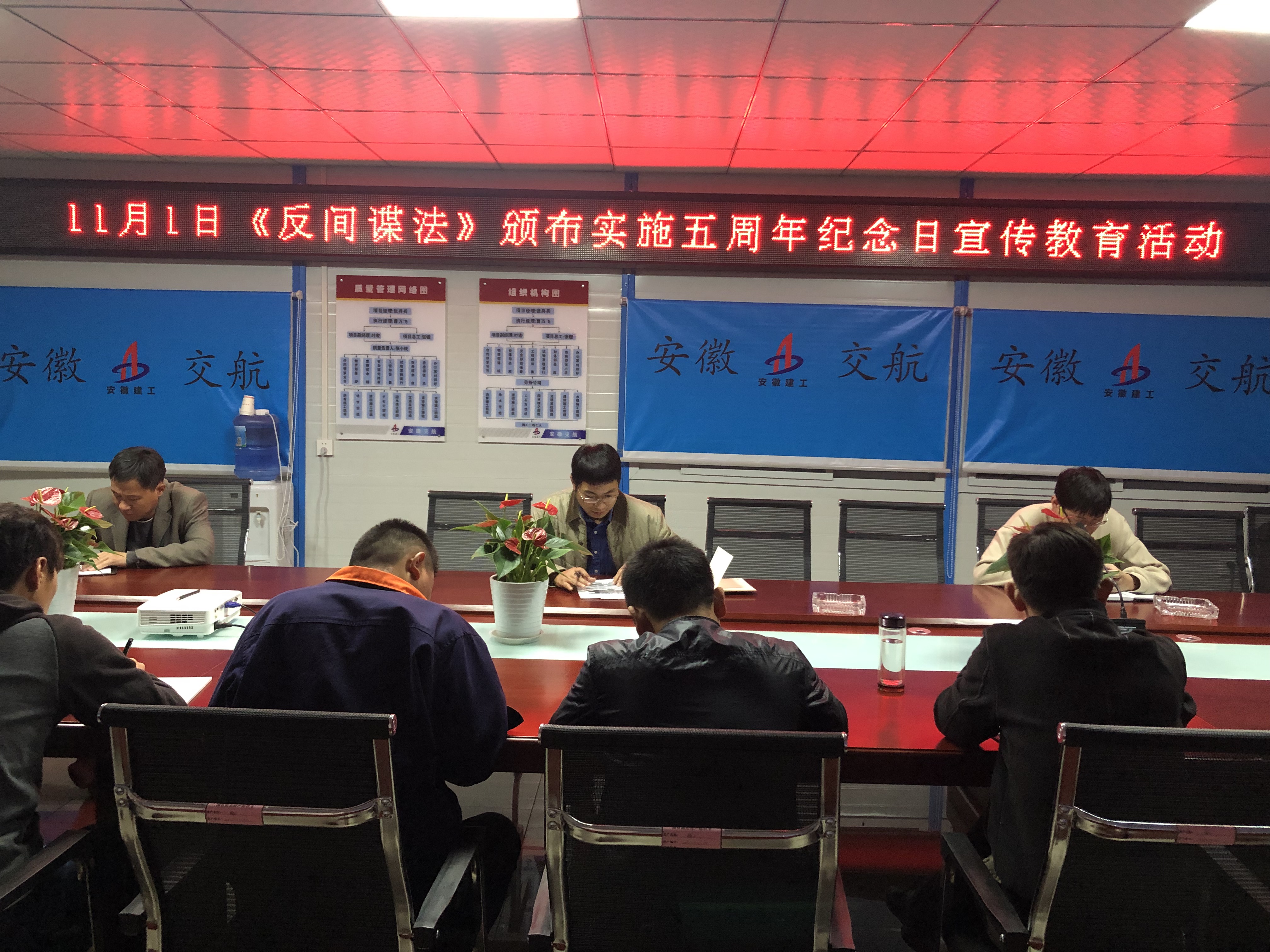 2019年11月1日,反間諜法已頒布五周年,為進一步增強員工的反間諜安全防范意識,使維護國家安全、保守國家秘密思想深入人心。11月8日,多金泗縣項目部開展學習《反間諜法》解釋及案例分析,項目部全體員工參加學習。